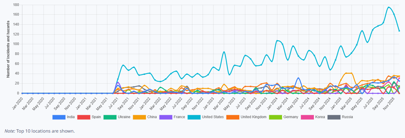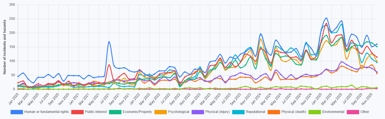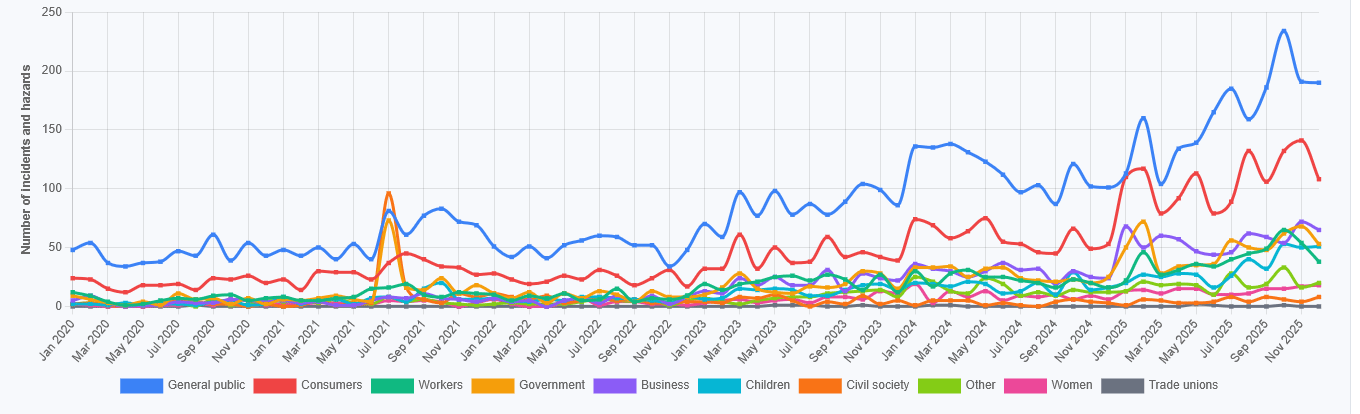 Total Number of AI Incidents by Hazard - Jan to Jan 2026